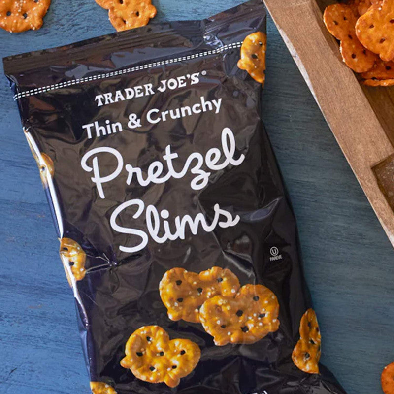 Trader Joe’s Pretzel Slims deliver the classic salty crunch of pretzels in a thin, crispy chip-like shape. Light and crispy, each bite-sized Slim is sprinkled with coarse salt for the perfect balance of texture and flavor.