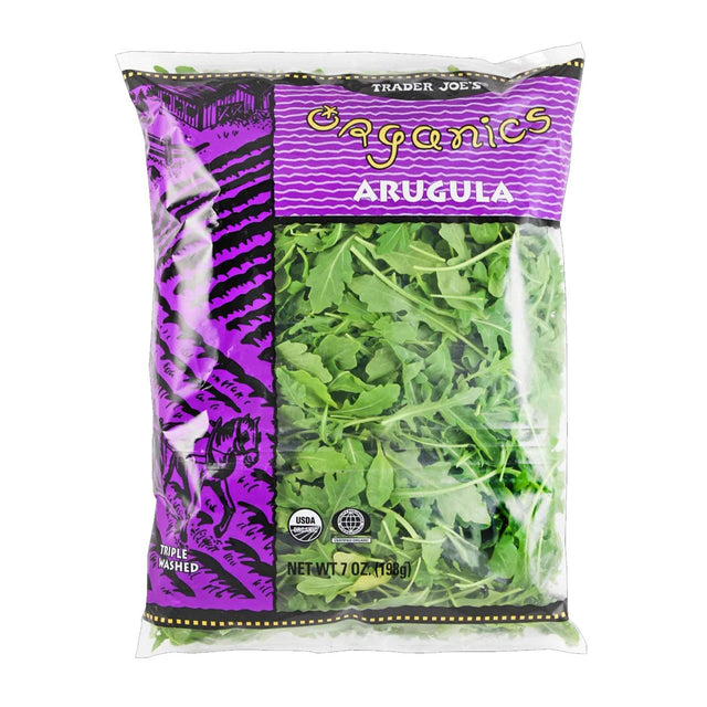 Trader Joe’s Organic Arugula is a fresh, peppery leafy green perfect for enhancing your meals. Triple-washed and ready to use, it’s great in salads, as a pizza garnish, or even as a spicy alternative to basil in pesto and Caprese salads.