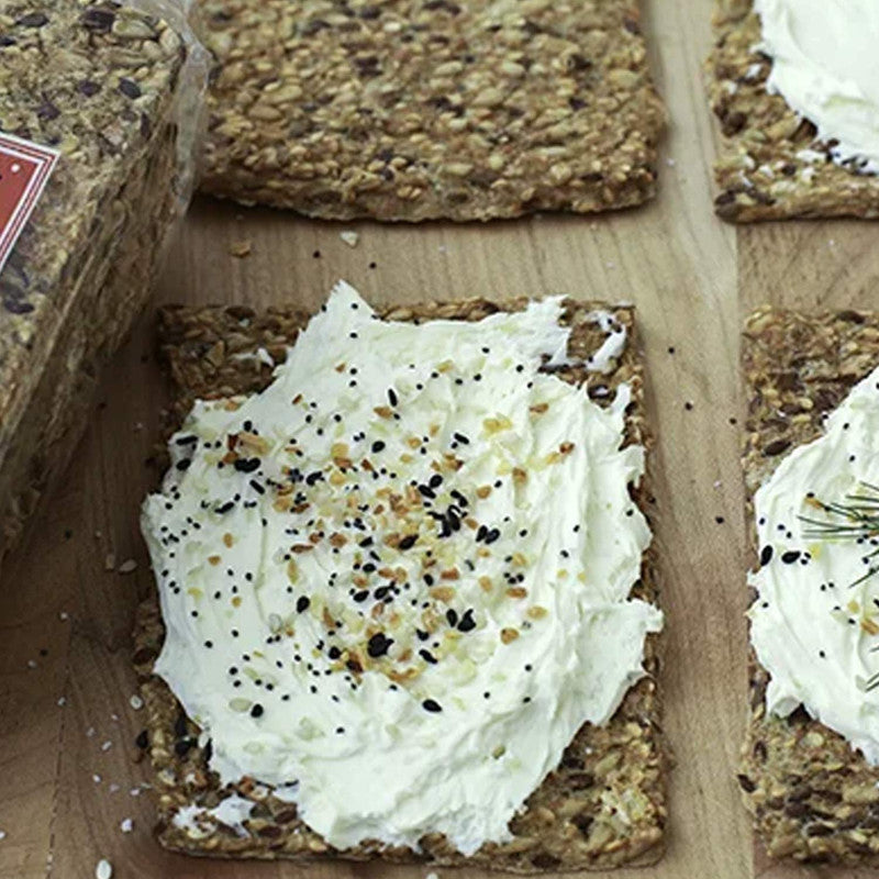 Trader Joe's Gluten Free Norwegian Crispbread brings a hearty, satisfying crunch to your snack time with a mix of sunflower, sesame, and flax seeds, oat flakes, and a touch of honey. Made in Norway, these crispbreads are gluten-free and offer 4g of protein and 3g of fiber per cracker. With their mildly salty flavor and coarse, seedy texture, they’re perfect on their own or paired with spreads like Trader Joe’s Cream Cheese and Everything But The Bagel Seasoning. Whether you're enjoying them as a snack or with a bowl of soup, these crispbreads bring a Viking-inspired crunch to any meal.