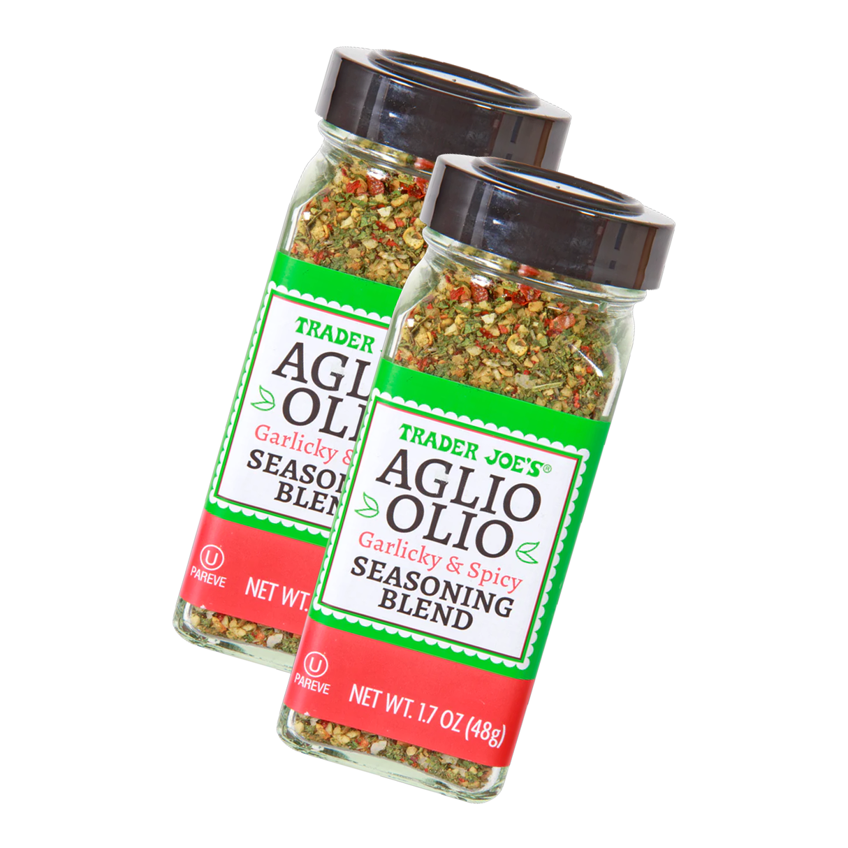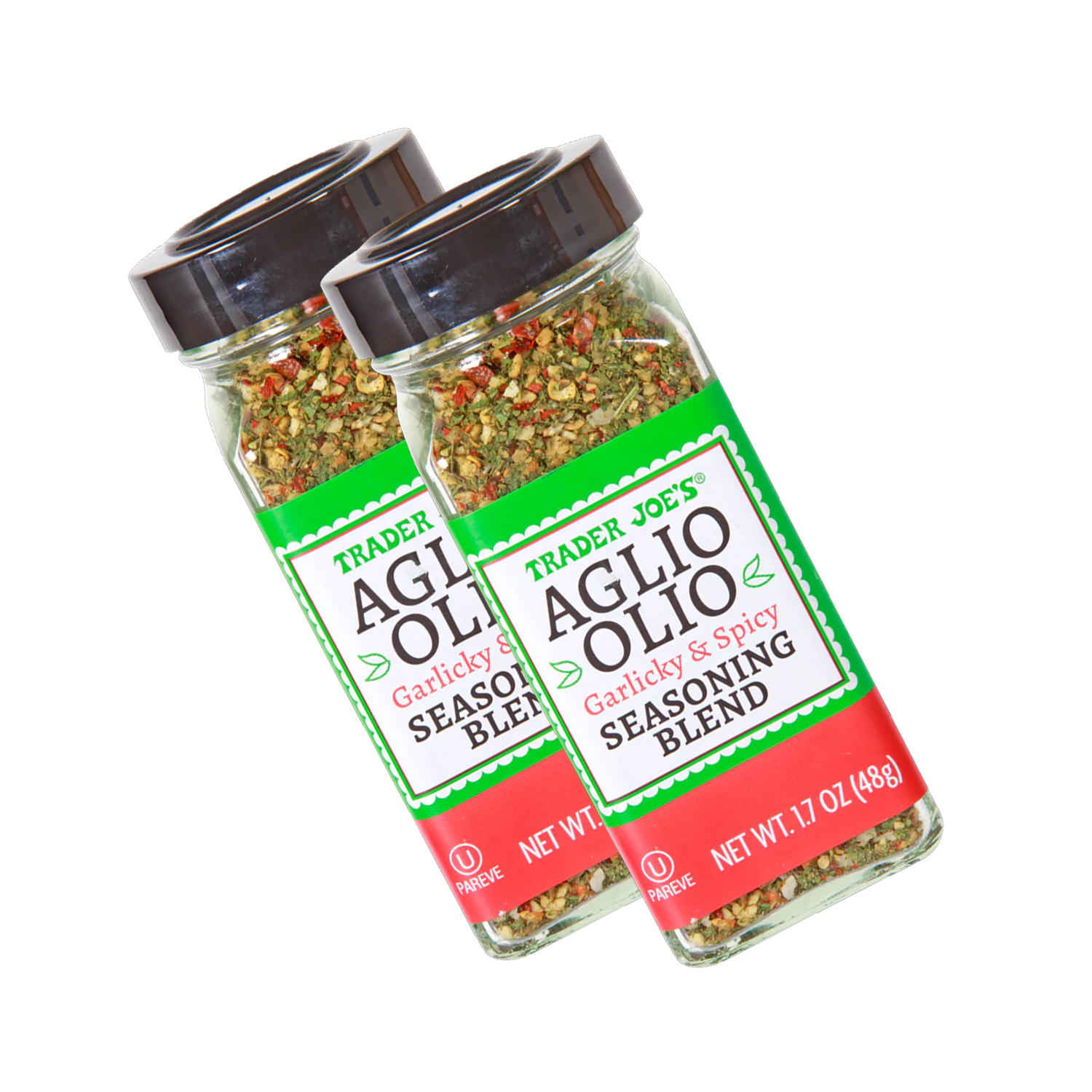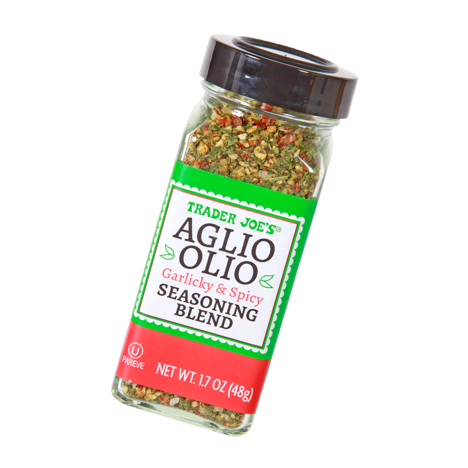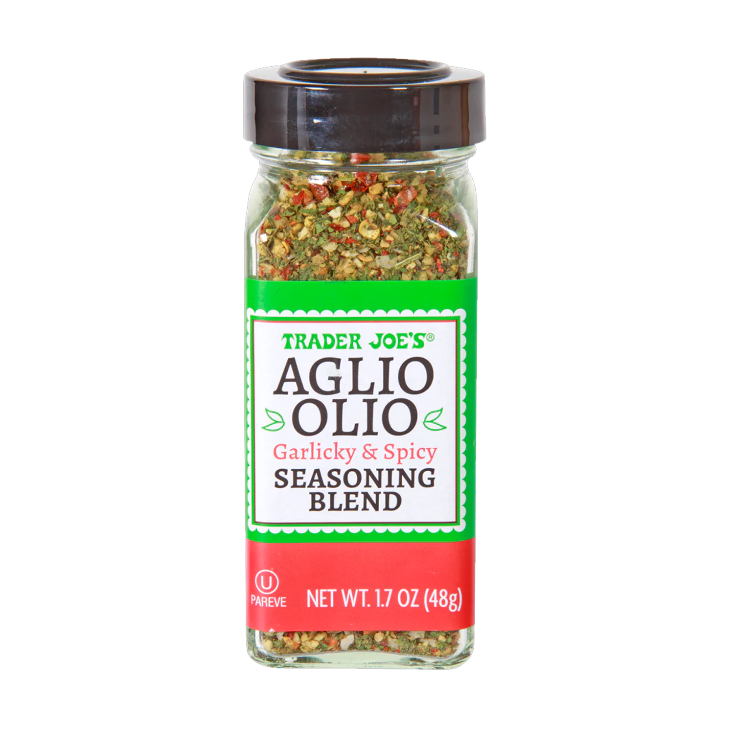 Inspired by the classic Italian dish, Trader Joe’s Aglio Olio Garlicky & Spicy Seasoning Blend brings together garlic, chili flakes, parsley, and sea salt for bold, pantry-ready flavor. Just shake it over pasta, veggies, or bread for a quick, savory kick—no chopping required!