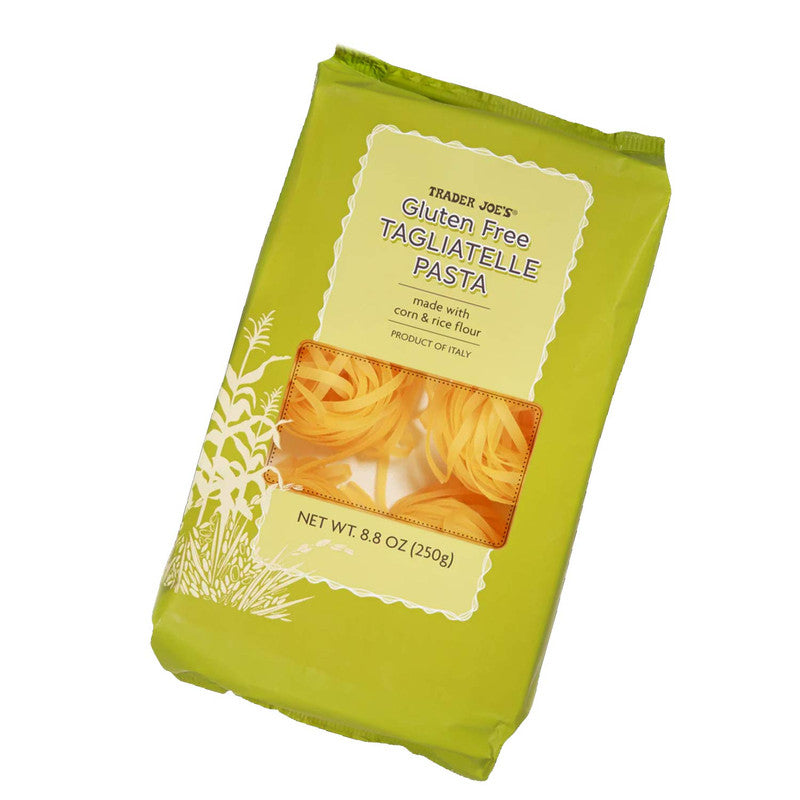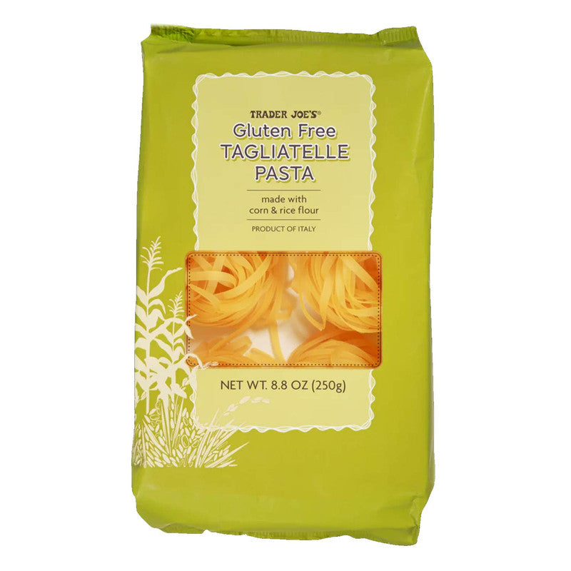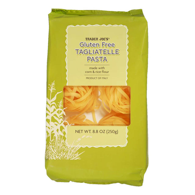 Trader Joe's Gluten-Free Tagliatelle Pasta offers a delicious alternative for those who need or prefer gluten-free options without sacrificing the texture and taste of traditional pasta. Made by our Italian supplier using a combination of corn and rice flours, this pasta is crafted to be nearly indistinguishable from regular pasta. The noodles are cut into long, ribbon-like strands, wider and slightly thinner than fettuccine, making them ideal for holding up against hearty sauces.