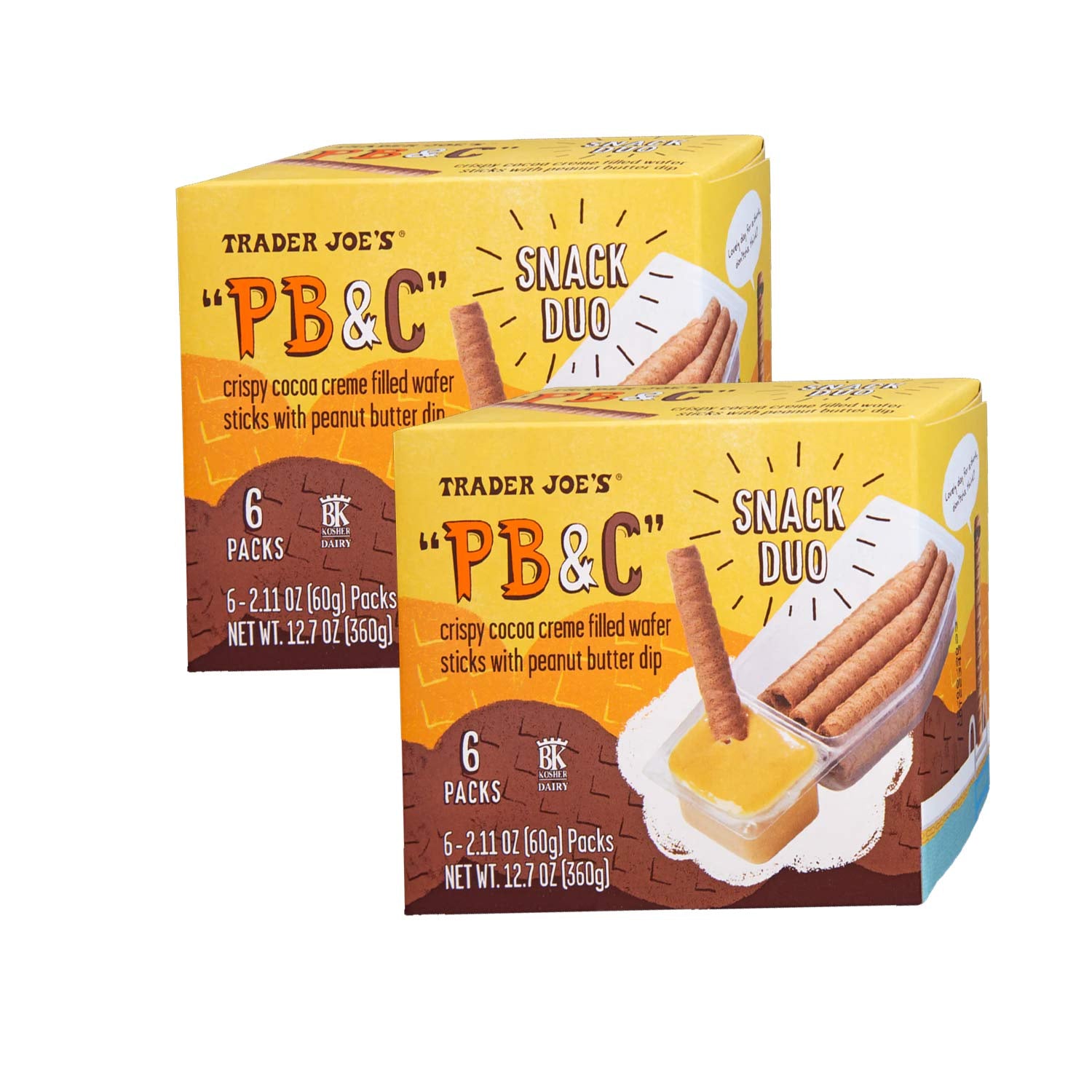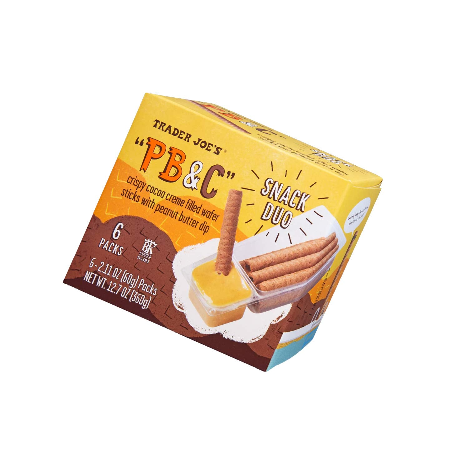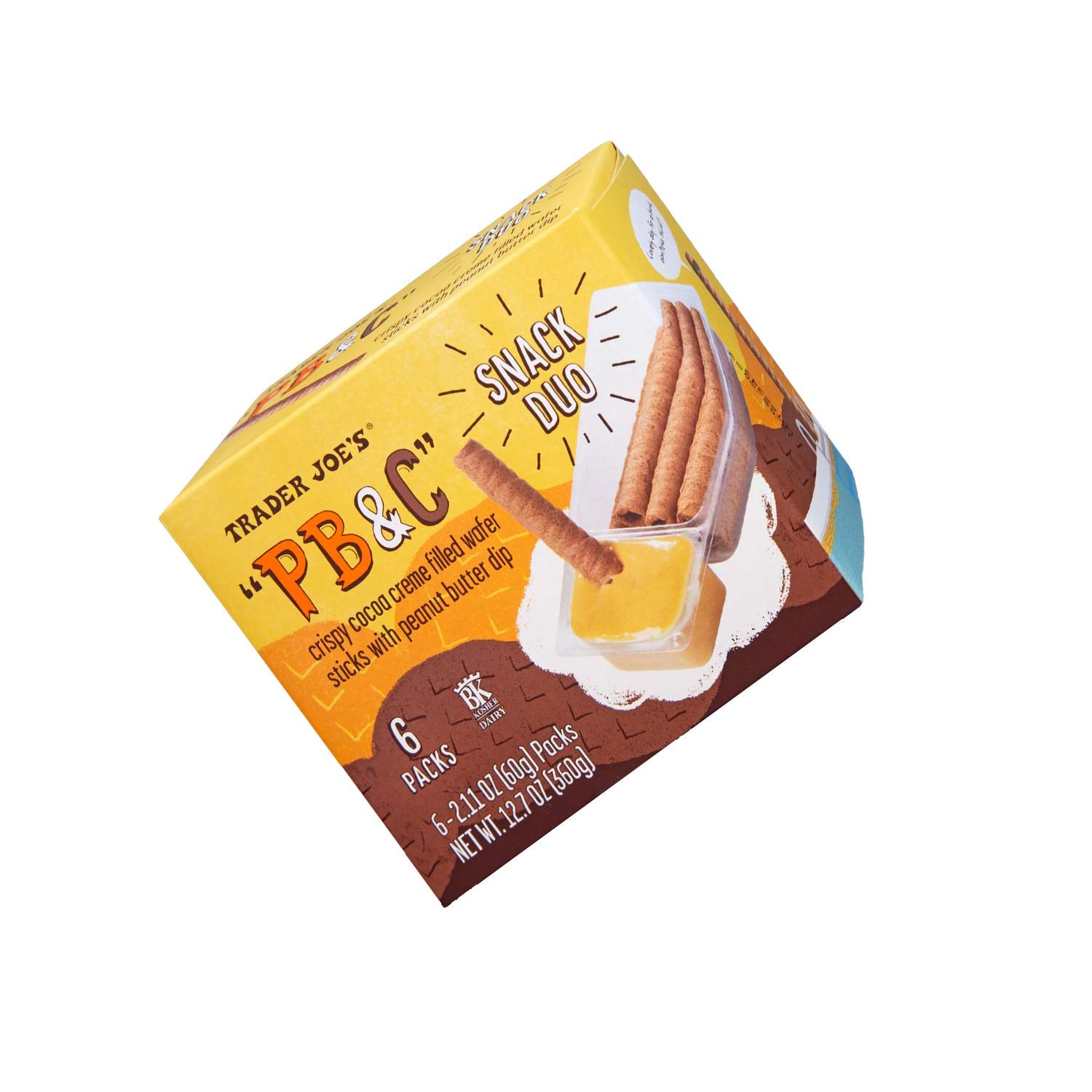 Trader Joe’s PB&C Snack Duo combines crispy cocoa crème-filled wafer sticks with a smooth, lightly salted peanut butter dip for the perfect sweet-savory snack. Each box includes six individually packed servings, making them great for on-the-go enjoyment.