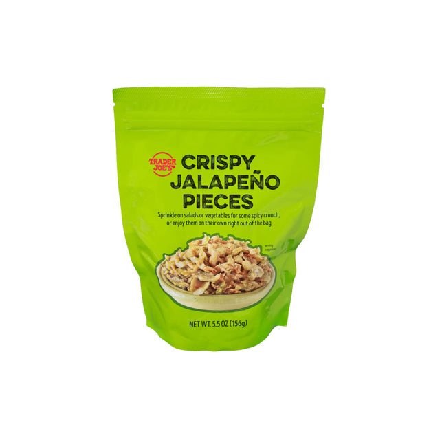 Trader Joe’s Crispy Jalapeño Pieces are a bold and crunchy topping made from real jalapeño peppers. Lightly breaded and fried to perfection, they add a zesty kick and satisfying crunch to any dish. Perfect for enhancing nachos, burgers, mac & cheese, salads, and more.