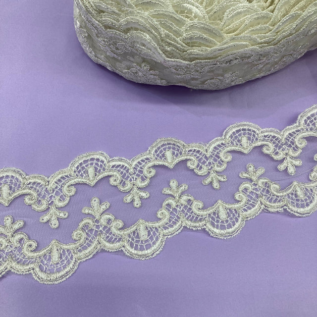1 Yard Corded Double Sided Lace Trim 3" Wide Embroidered Polyester Net Mesh for Bridal & Special Occasion
