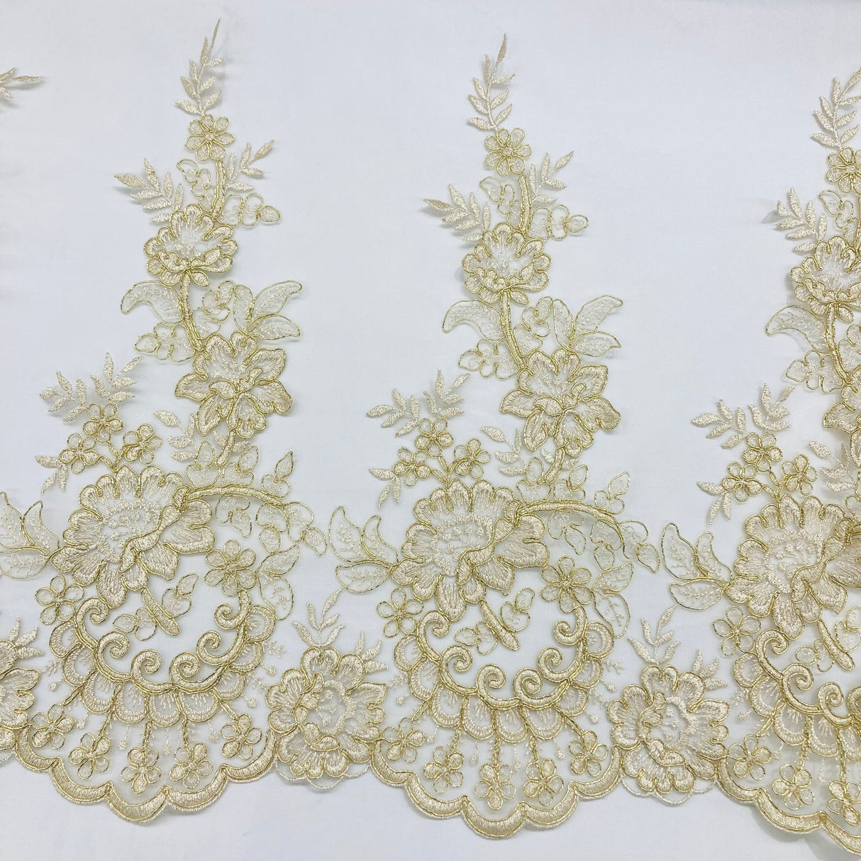 1 Yard Corded Lace Trimming Embroidered on 100% Polyester Net Mesh 15″ Wide - Gold is backordered and will ship as soon as it is back in stock.