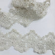 Add glamour and sparkle to your special occasion with this beautiful Beaded & Corded Lace Trimming embroidered on soft polyester net mesh. This exquisite trim enhances wedding dresses, evening gowns, quinceañera dresses, dance costumes, and more with elegant, timeless detailing.