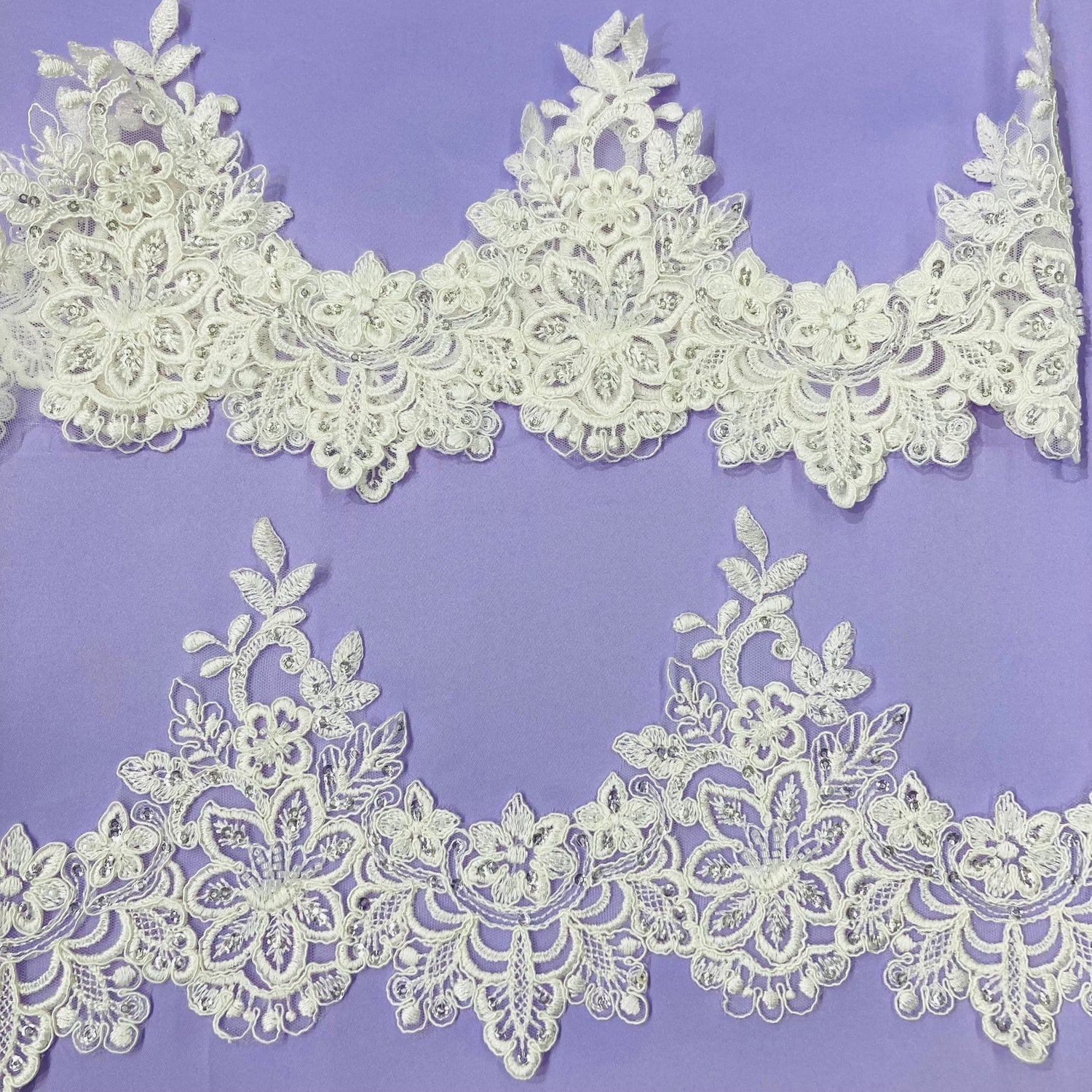 Elevate your special occasion dresses with this exquisite Beaded & Corded Lace Trimming embroidered on 100% polyester net mesh. Perfect for wedding gowns, evening dresses, quinceañera outfits, and dance costumes, this trim adds an elegant touch of sophistication with its intricate beads, pearls, and sequins.