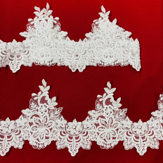1 Yard Embroidered on 100% Polyester Net Mesh 6″ Wide Beaded & Corded Lace Trimming
