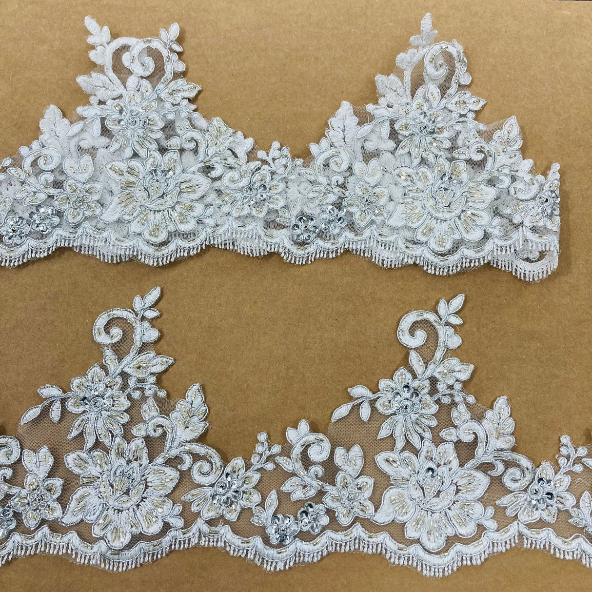 1 Yard 6" Wide Beaded & Corded Floral Lace Trimming Embroidered on 100% Polyester Net Mesh