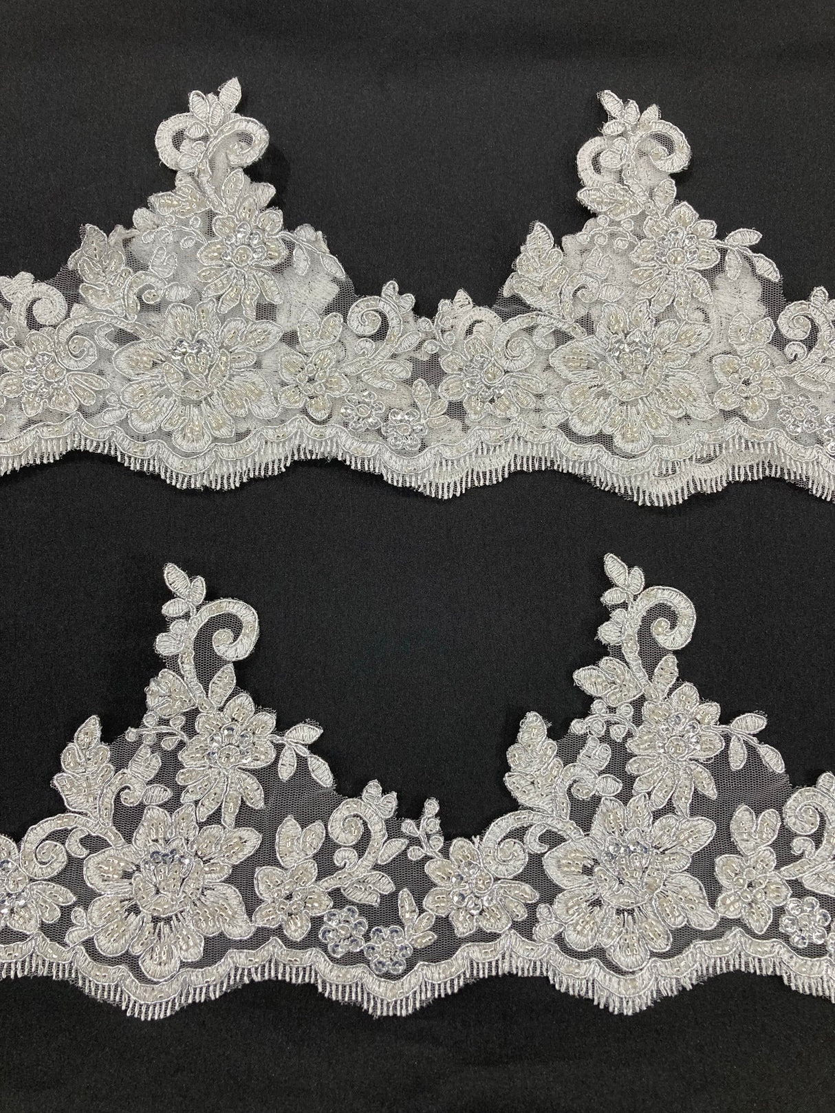 For a timeless and romantic look, our Beaded & Corded Floral Lace Trimming embroidered on 100% polyester net mesh adds unforgettable elegance to any special occasion garment. Perfect for bridal gowns, quinceañera dresses, evening wear, and dance costumes, this exquisite trim elevates your designs with both sparkle and sophisticated texture.