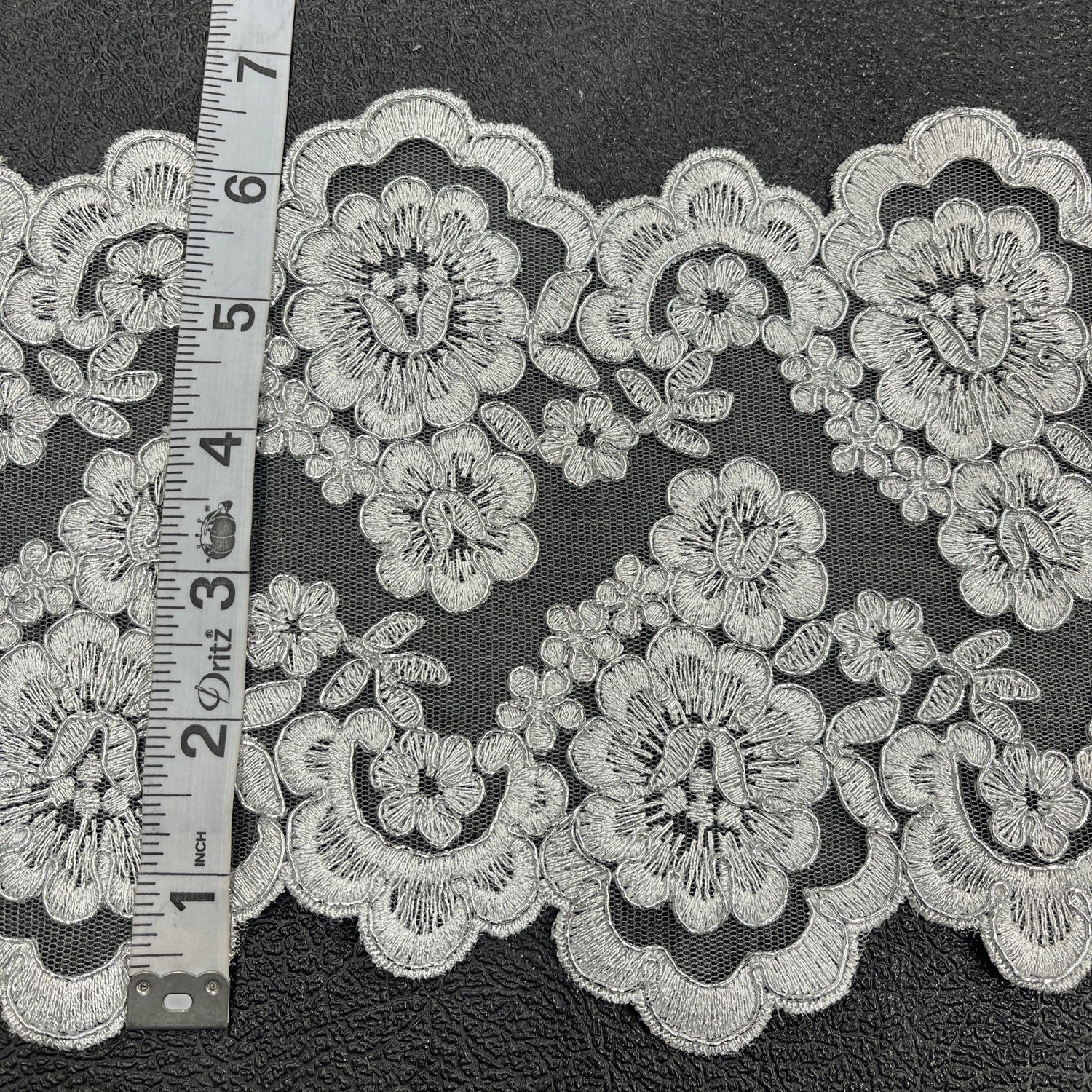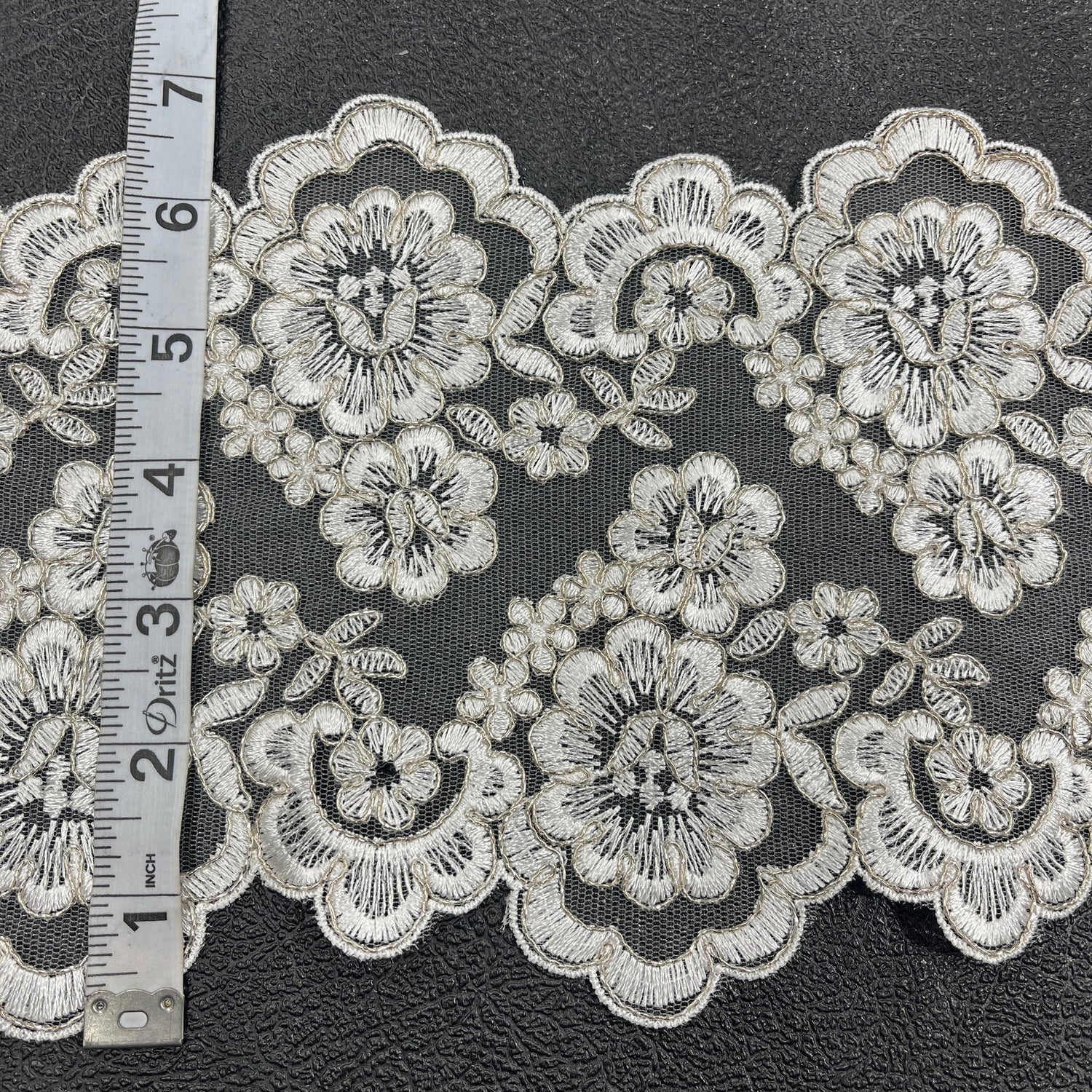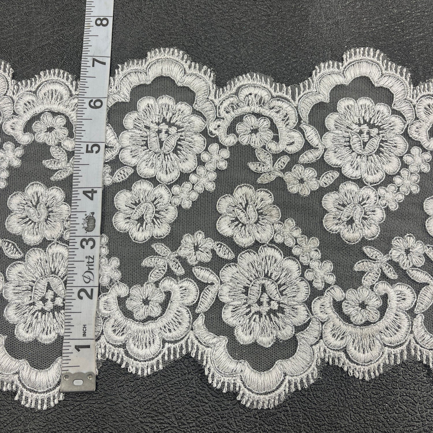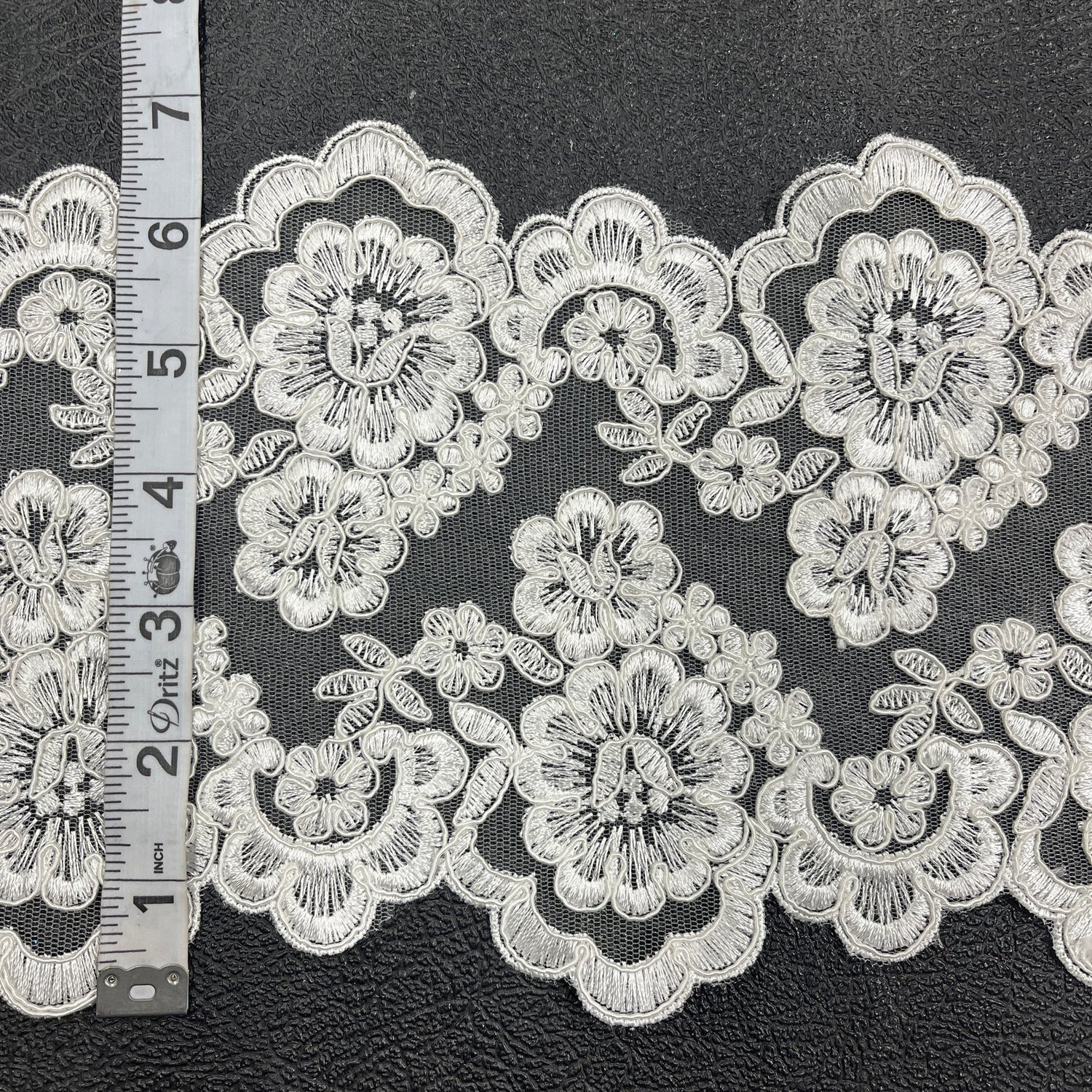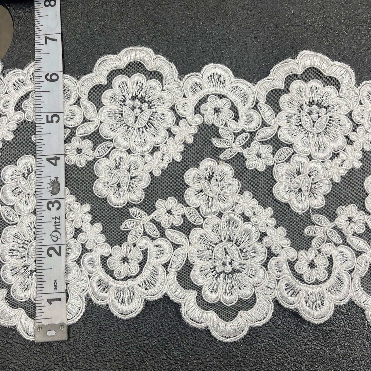 1 Yard Corded Double Sided Lace Trimming Embroidered on 100% Polyester Net Mesh 6.5" Wide