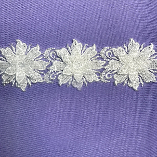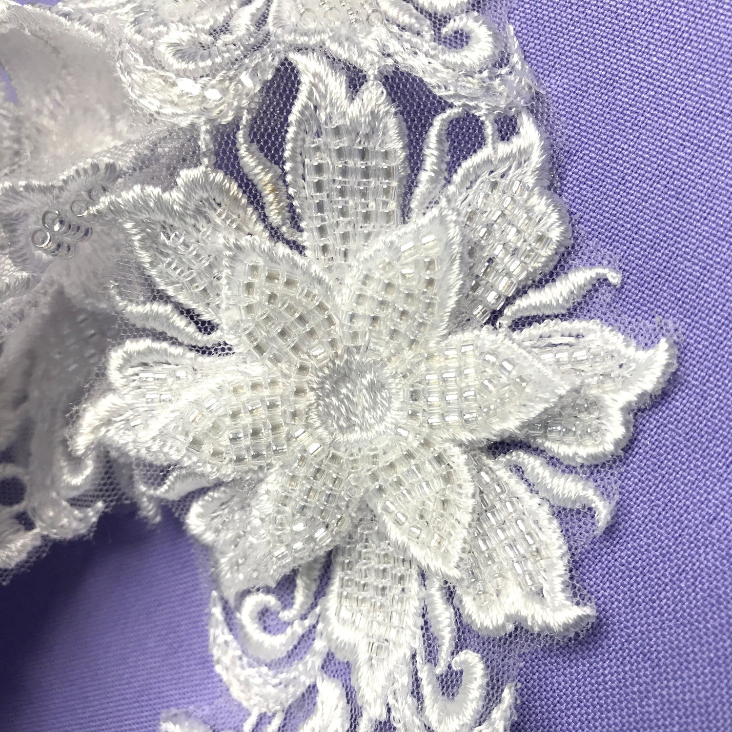 1 Yard Embroidered on 100% Polyester Net Mesh 2.5" Wide Beaded 3D Floral Lace Trimming - White is backordered and will ship as soon as it is back in stock.