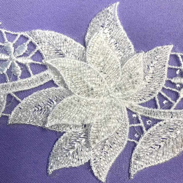 1 Yard Beaded 3D Floral Lace Trimming Embroidered on 100% Polyester Net Mesh 4" Wide - White is backordered and will ship as soon as it is back in stock.