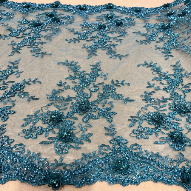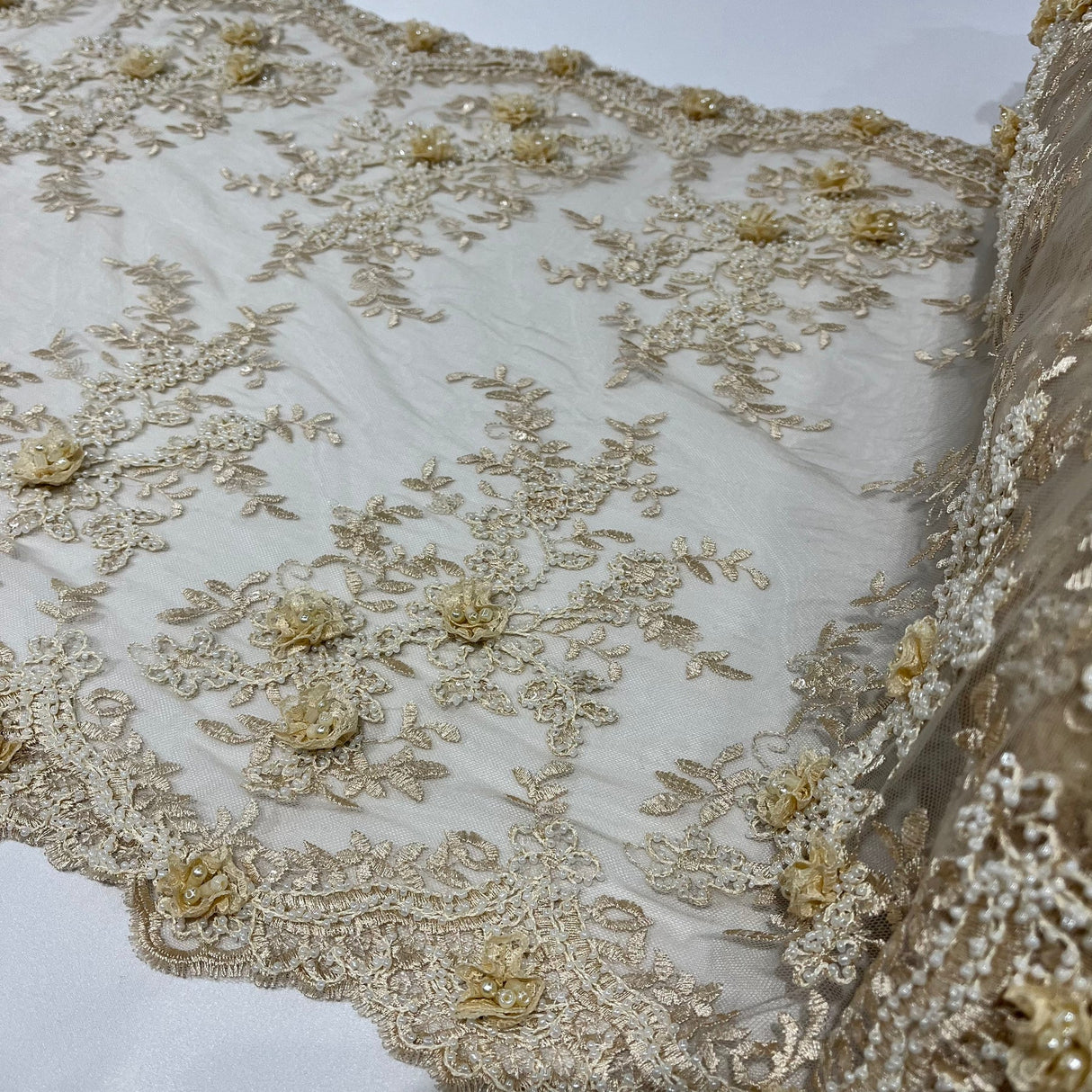 1 Yard 100% Polyester Net Mesh 21" Wide Beaded Double Sided 3D Floral Lace Trimming