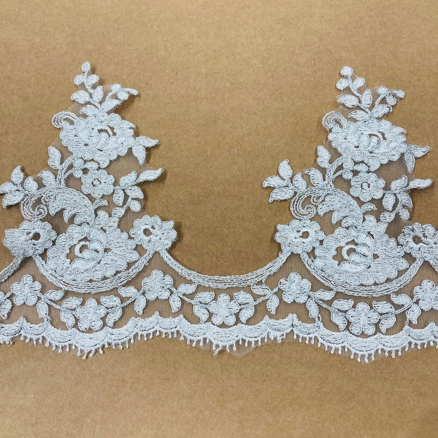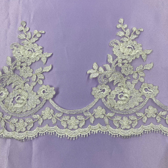 1 Yard Luxurious Corded Lace Trimming Embroidered Polyester Net Mesh for Dresses 8.5 Inch Width - Ivory with Silver is backordered and will ship as soon as it is back in stock.