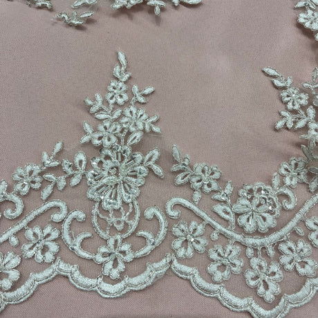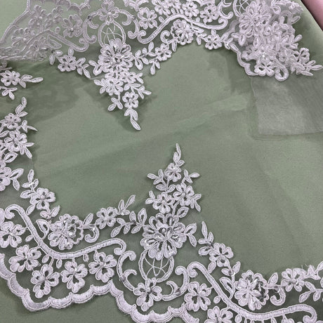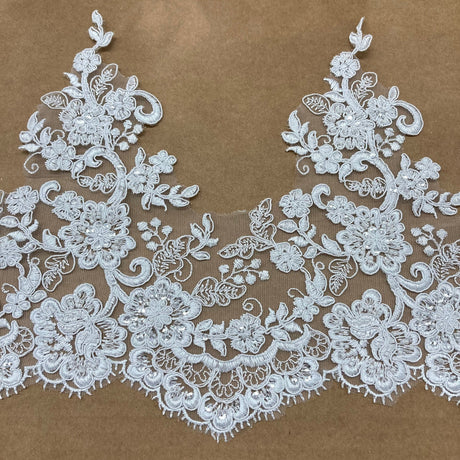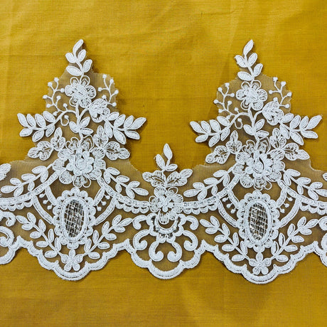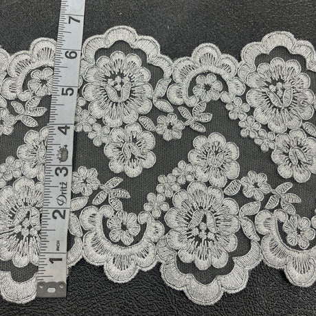 1 Yard 6" Wide Beaded & Corded Floral Lace Trimming Embroidered on 100% Polyester Net Mesh