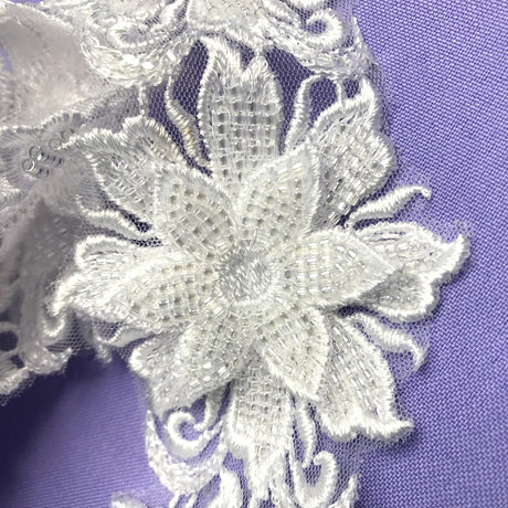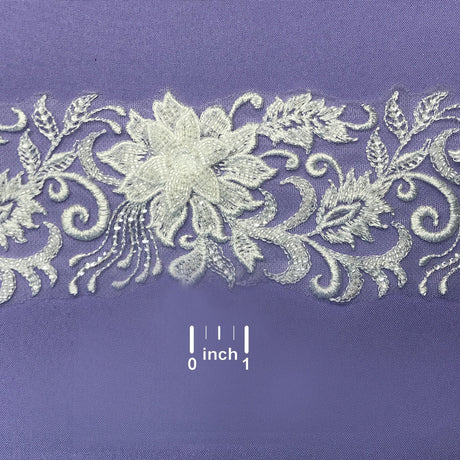 1 Yard Beaded 3D Floral Lace Trimming Embroidered on 100% Polyester Net Mesh 3.5" Wide