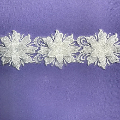 1 Yard Embroidered on 100% Polyester Net Mesh 2.5" Wide Beaded 3D Floral Lace Trimming