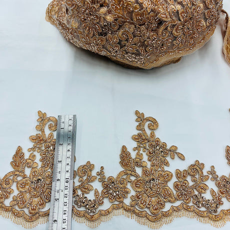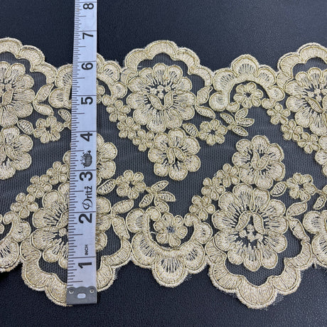 1 Yard Trimming Embroidered on 100% Polyester Net Mesh 8" Wide Beaded & Corded Lace