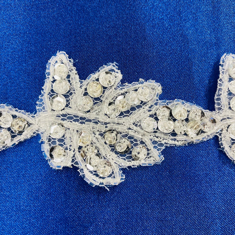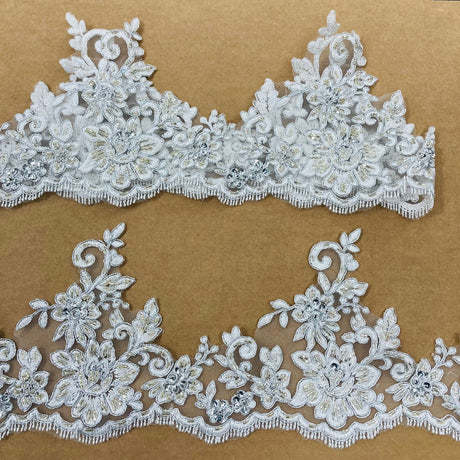1 Yard Beaded & Corded Lace Trimming Embroidered on 100% Polyester Net Mesh 11" Wide