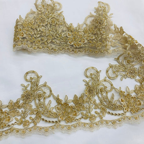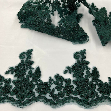 1 Yard Beaded & Corded Floral Lace Trimming Embroidered on 100% Polyester Net Mesh 6" Wide