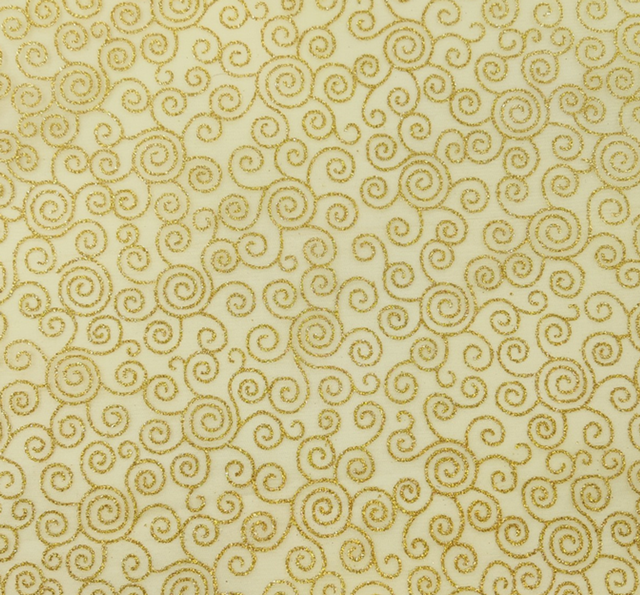 This gold swirl Tricot (AKA Tulle) fabric is a lightweight, elegant choice perfect for adding a touch of glamour to your creations. Made from 100% nylon and measuring 58/60" wide, it’s ideal for tutus, hats, princess costumes, arts and crafts, decorations, bridal gowns, and overlays for blouses, skirts, and dresses. Delivers just the right amount of sparkle and sophistication. Hand wash and drip dry recommended.