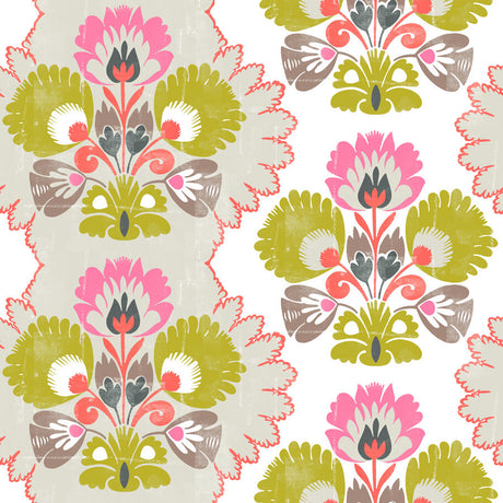 1 Yard Elegant Floral Damask Fabric, 18" x 18" Repeat