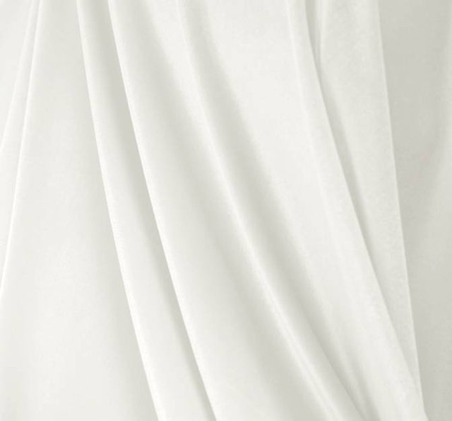 This Optic White Stretch Velvet fabric is made from 90% polyester and 10% spandex. It offers an ultra-soft hand finish and elegant drape, with a medium weight of 360gr/yd and 58/60" width. Stretching comfortably across the grain, it is perfect for evening wear, skirts, leggings, dancewear, costumes, and holiday apparel. Also great for home décor and craft projects. Machine washable (cold) for easy care.