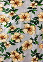 • Elegant silver, gold, and green floral print on soft crushed velvet, perfect for bold fashion or statement decor pieces.