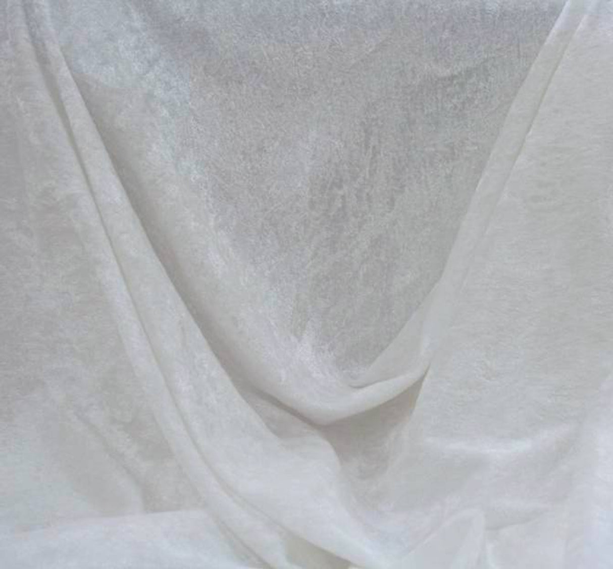 Experience luxurious softness and elegant texture with our Stretch Velvet Crushed Optic White fabric. Measuring 58/60 inches wide, this premium apparel textile offers a beautiful crushed optic finish that adds depth and dimension to any garment. The fabric's excellent stretch ensures comfort and flexibility, making it perfect for stylish dresses, tops, activewear, and evening wear. Durable yet lightweight, this fabric is designed for easy drape and lasting wear.