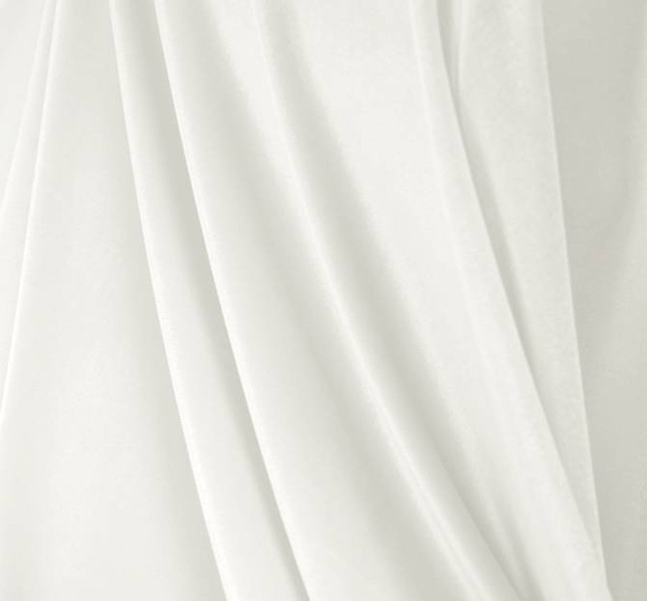 This solid optic white stretch velvet fabric is made from 90% polyester and 10% spandex, with a medium weight of approximately 360 grams per yard. It features an ultra-soft hand finish and elegant drape, stretching across the grain for comfort and style. Ideal for evening wear, skirts, leggings, tops, dancewear, costumes, holiday apparel, and children’s clothing. Also perfect for home décor, event decorations, and creative craft projects. Machine washable (cold). Sold by the yard.
