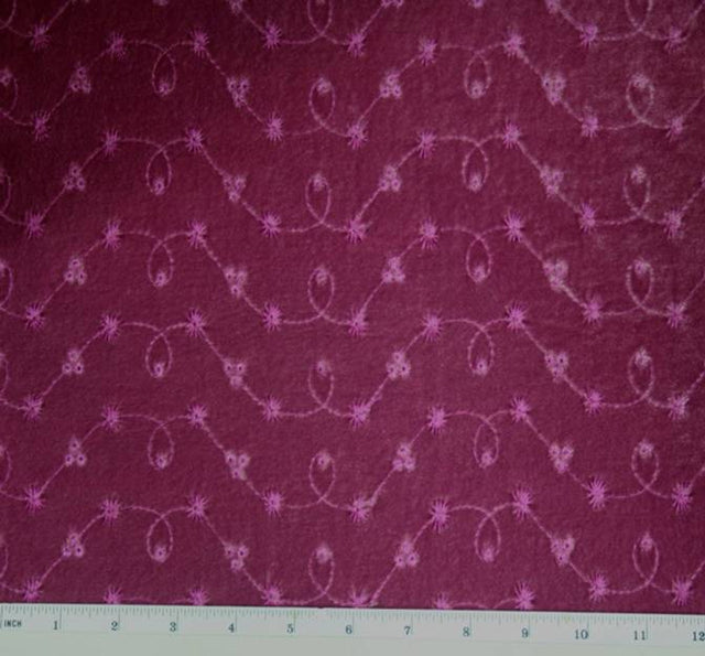 This rich plum dazzle velvet with embroidery adds a unique statement to formal garments, theatrical costumes, or upscale decorative accents.