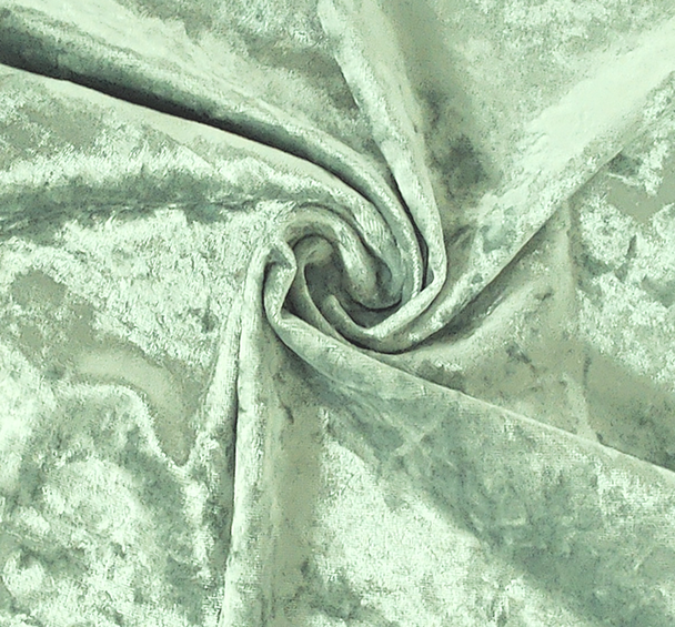 This sage green stretch crushed velvet fabric is made from a smooth blend of 90% polyester and 10% spandex. It offers a rich crushed surface, ultra-soft texture, and graceful drape with stretch across the grain. Ideal for elegant clothing such as skirts, leggings, tops, dancewear, costumes, and seasonal outfits. Also suitable for decorative home and event accents, or creative craft projects. Machine washable (cold). Sold by the yard.