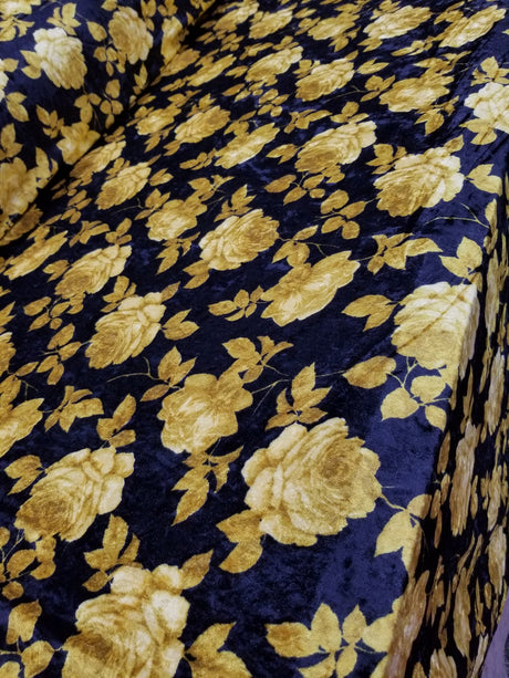 1 Yard Blue Rust Crushed Floral Stretch Velvet Fabric for Dresses Upholstery Curtains 60 Inch Width