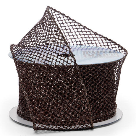 Plain Mesh Wired Ribbon 2 1/2 '' X 10 yd Brown Metallic (Glitter) Color 1 / roll