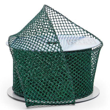 Plain Mesh Wired Ribbon 2 1/2 '' X 10 yd Emerald Metallic (Glitter) Color 1 / roll