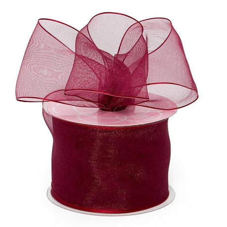 Sheer Organza Wired Ribbon 1 1/2 '' X 25 yd Wine Color 1 / roll