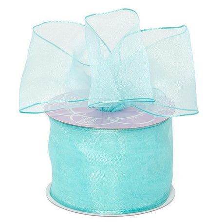 Sheer Organza Wired Ribbon 2 1/2 '' X 25 yd Aqua Color 1 / roll