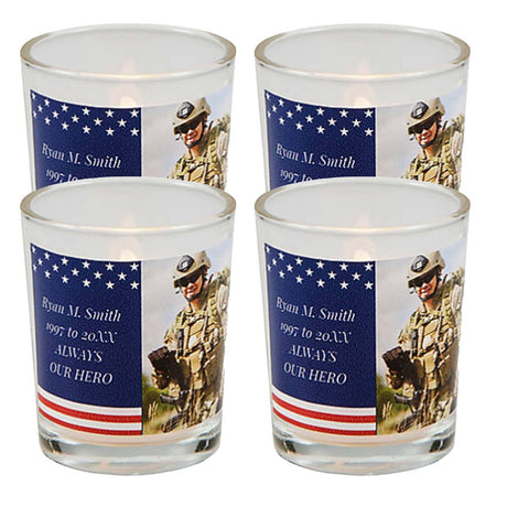2 1/2" Personalized Patriotic Photo Memorial Votive Holders 12 Pieces