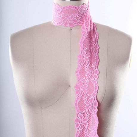 2 Yards Black Stretch Lace Trim 2.5" Wide Floral Elastic for Lingerie, Bralettes & Sewing Crafts