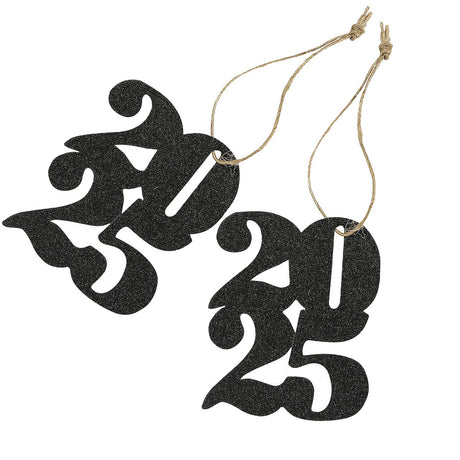2 1/4" x 3" Stacked 2025 Year Black Glitter Cardstock Favor Tags - 12 Pc.