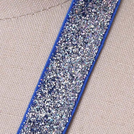 2 Yards Blue and Silver Glitter Elastic Trim 5/8" Stretchy Headband Elastic