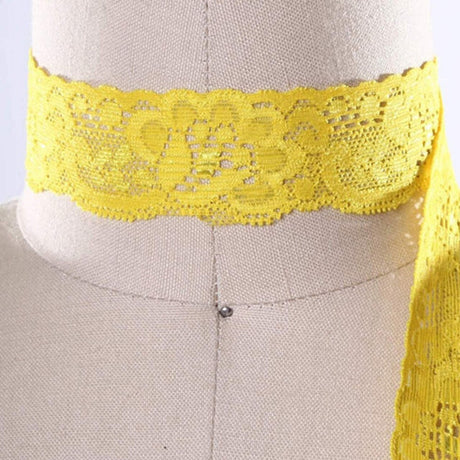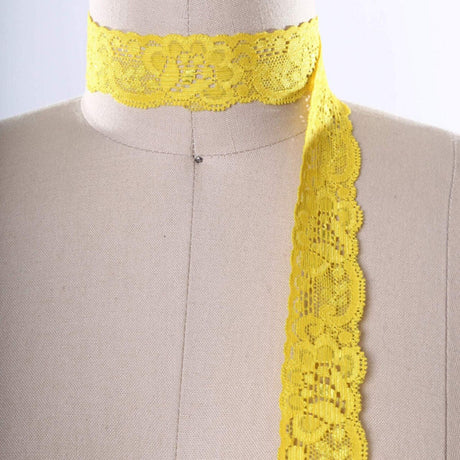 2 Yards Bright Yellow Stretch Lace Trim 1" Narrow Floral Elastic for Lingerie, Crafts & Sewing
