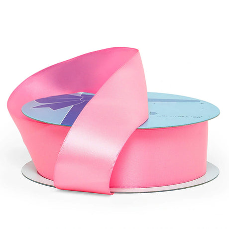 Vibrant Solid Satin Ribbon for Wrapping 7/8 '' X 50 yd Double Faced 1 / roll Bubblegum Pink