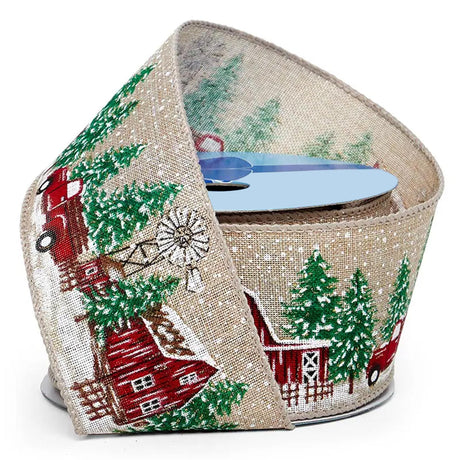 Vintage Scenes On Wired Ribbon 2 1/2 '' X 10 yd Truck & Barn Color 1 / ROLL