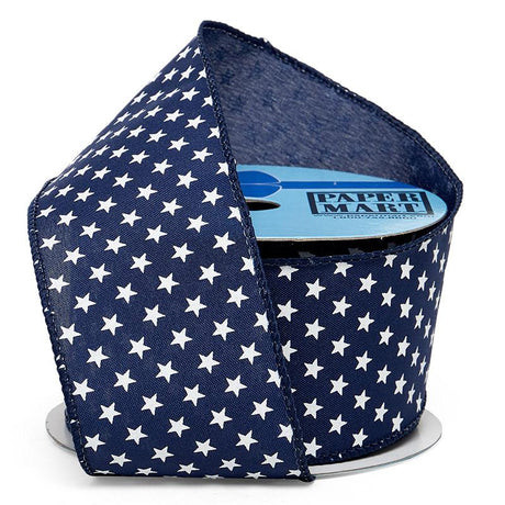White Stars On Wired Ribbon Navy / White Color 1 / ROLL