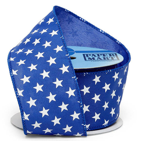 White Stars On Wired Ribbon Blue / White Color 1 / ROLL