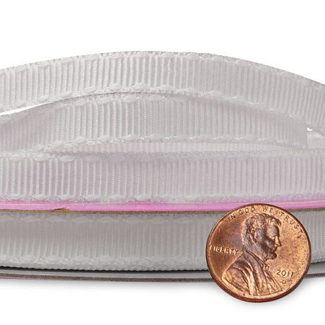 White Narrow Saddle/Side Stitched Grosgrain Ribbon – 3/8" x 25 Yards (1 Roll)