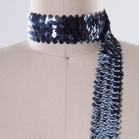 1 Yard 1.5" Black Stretch Elastic Sequin Trim