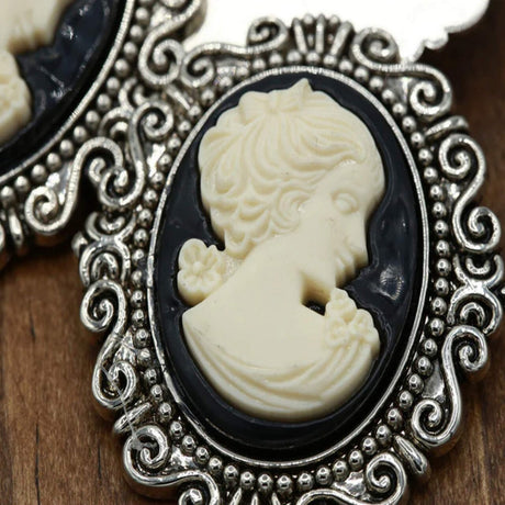 1 Pc Gold Ivory Female Face Cameo Button Plastic